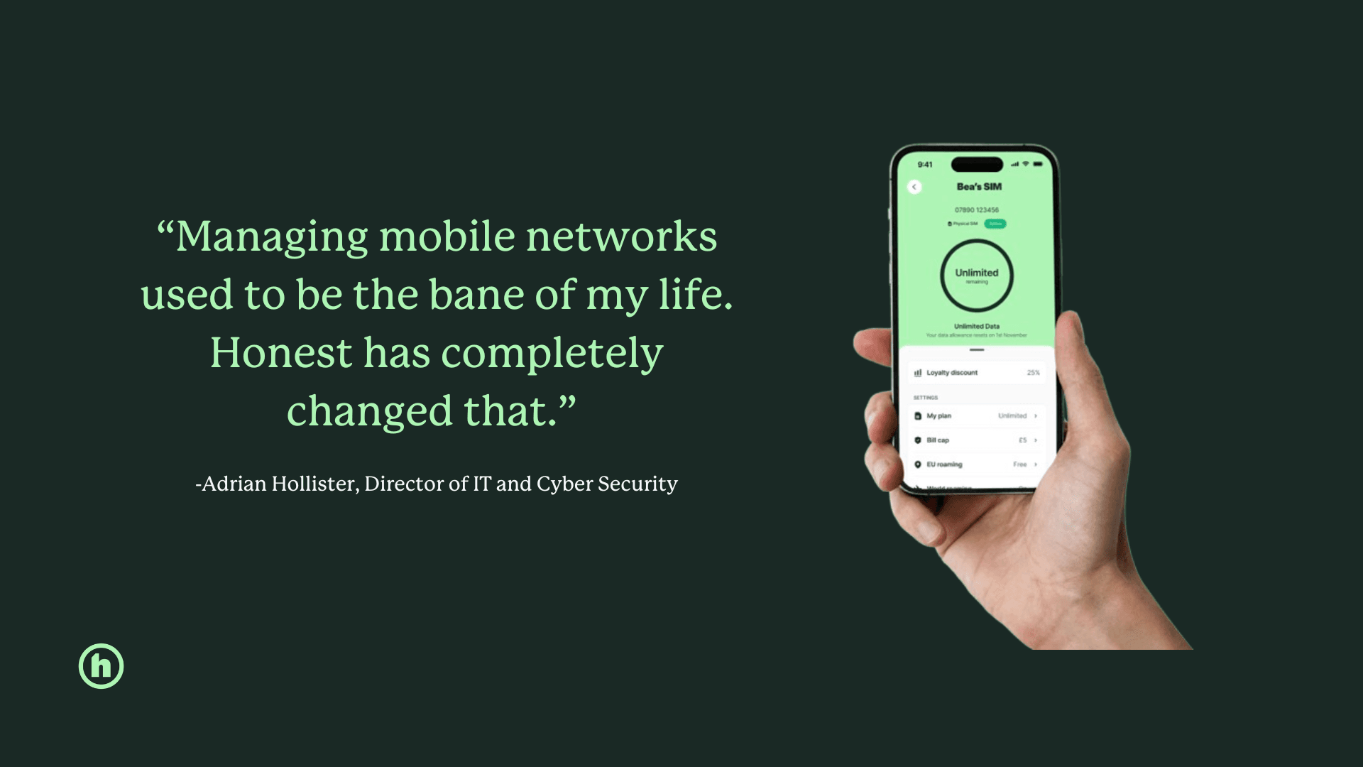 Now, Adrian and the team can easily manage roaming costs and data allowances in the Honest hub, making it straightforward to keep employees connected without spiralling costs.